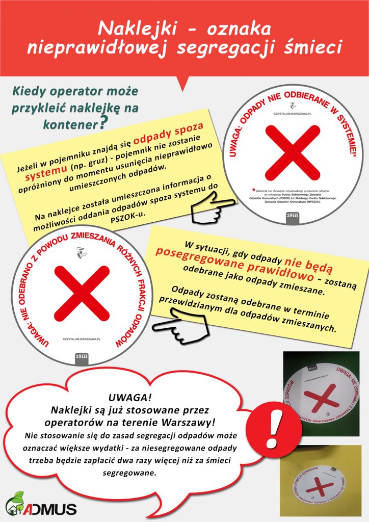 Naklejka informująca o nieprawidłowej segregacji śmieci