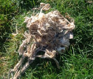 Na zdjęciu zdemontowany wirnik pompy z owiniętymi chusteczkami higienicznymi.