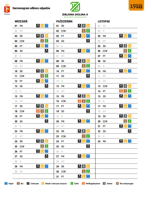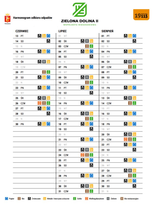 24.07.2025 r. (czwartek) odbędzie się odbiór odpadów wielkogabarytowych. Wyżej wymienione odpady należy składować w altanie przy ul. Belliniego 2.