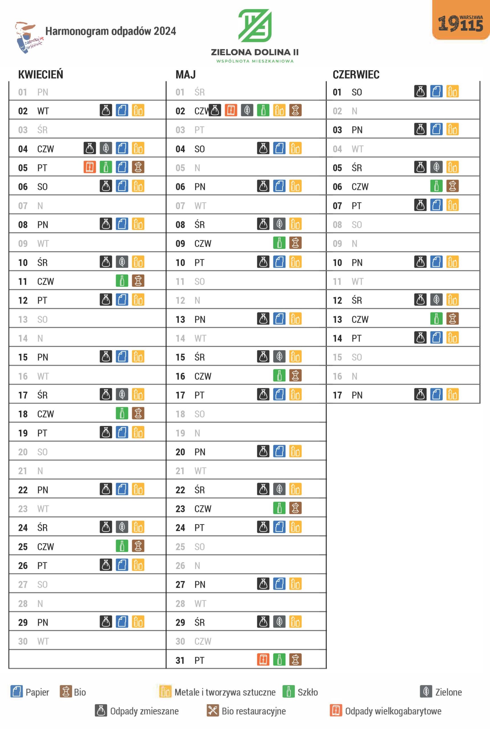 Harmonogram odbioru odpadów Kwiecień – Maj – Czerwiec